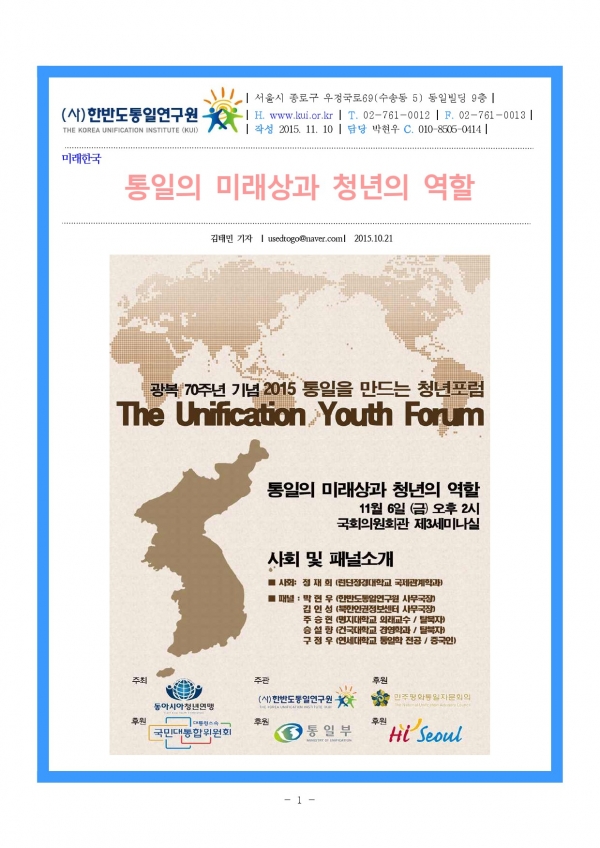 [데이터뉴스] 광복70주년 기념 ‘통일을 만드는 청년포럼’ 개최